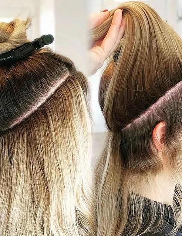 Hand-tied weft hair extensions require no tape, glue, or heat for application. These are a collection of pieces that have been pre-cut and sewn by hand to create the smallest weft-size possible.